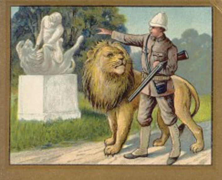 However, the objective reality is quite different: the lion is simply an ordinary lion—neither monstrous nor adorable—and the man is just a normal human being, neither particularly fat nor especially strong.