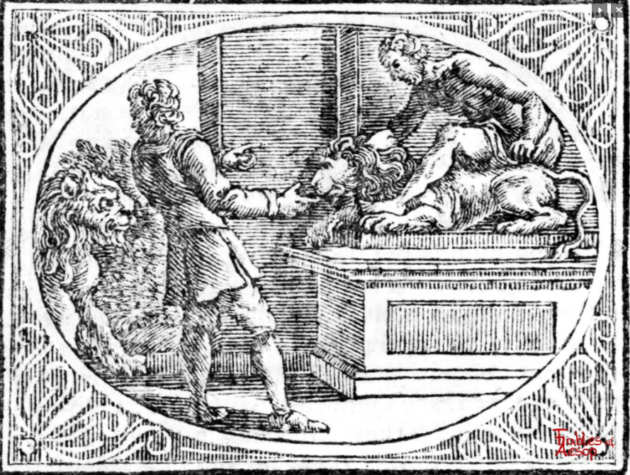 Unfortunately, Marc Chagall did not illustrate this particular fable. However, I discovered that there are many variations of The Man and the Lion. Among them, I chose the version by Jefferys Taylor, as his version includes an “after-story”—a reflection on how the outcome might have changed if the man had been wiser. This additional layer introduces a new perspective and enhances the story’s alignment with the Rashomon Effect, making it an ideal narrative for my project.