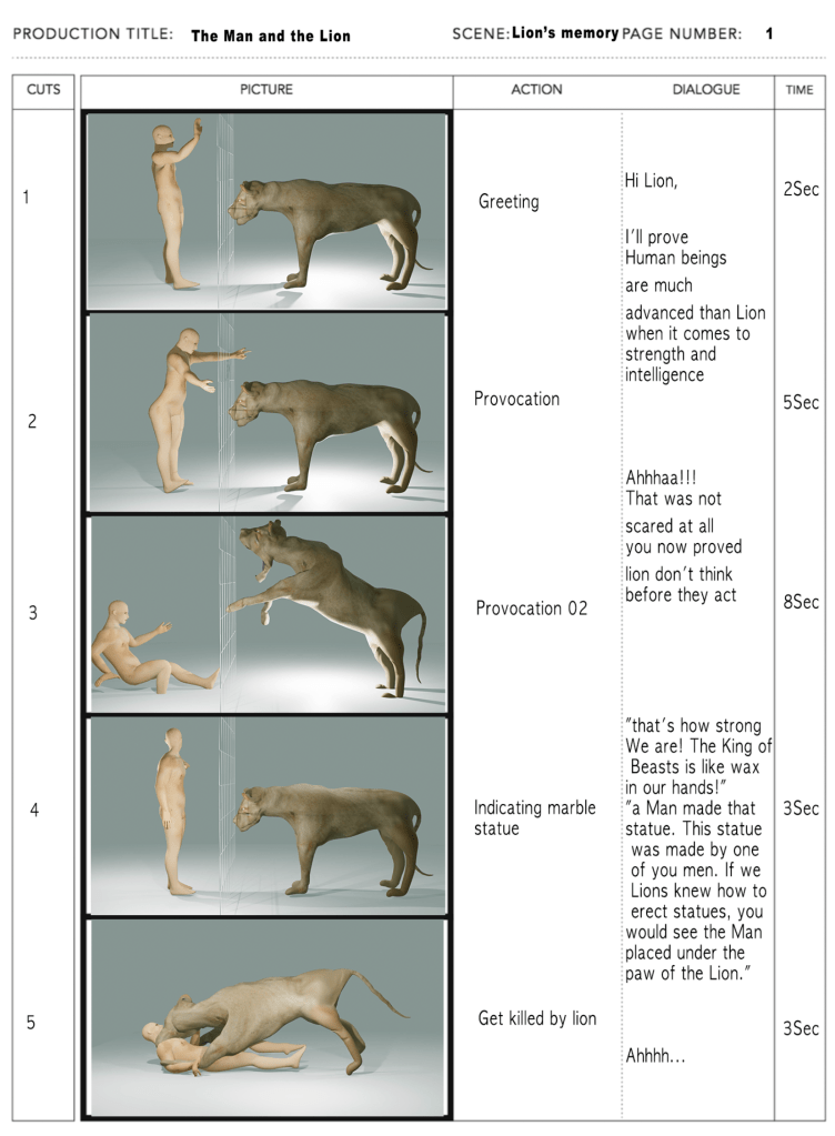 This made me wonder if I could find a story that fits well with the Rashomon Effect—one that reflects multiple perspectives or subjective interpretations. Eventually, I came across The Man and the Lion, which I believe is one of the closest examples to the concept I was seeking.