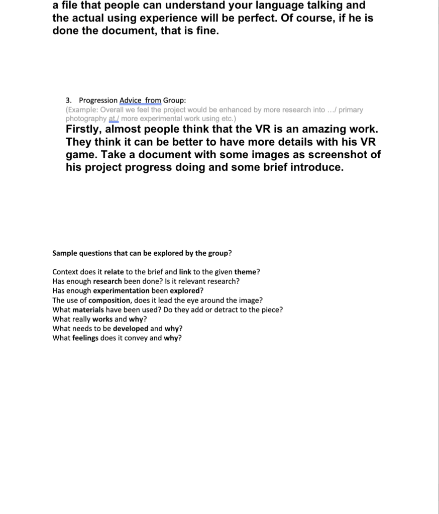 One key takeaway from this experience is that when presenting real-time media like games, it is often more reliable and professional to prepare a pre-recorded gameplay video. This approach ensures stability and avoids potential technical disruptions.Another challenge I encountered was the use of overly technical language. At times, it made it difficult for the audience—especially those unfamiliar with game development—to follow my explanations. Moving forward, I’ve learned the importance of adjusting technical communication to the knowledge level of the audience to ensure clarity and engagement.Previous peer assessment for Pat