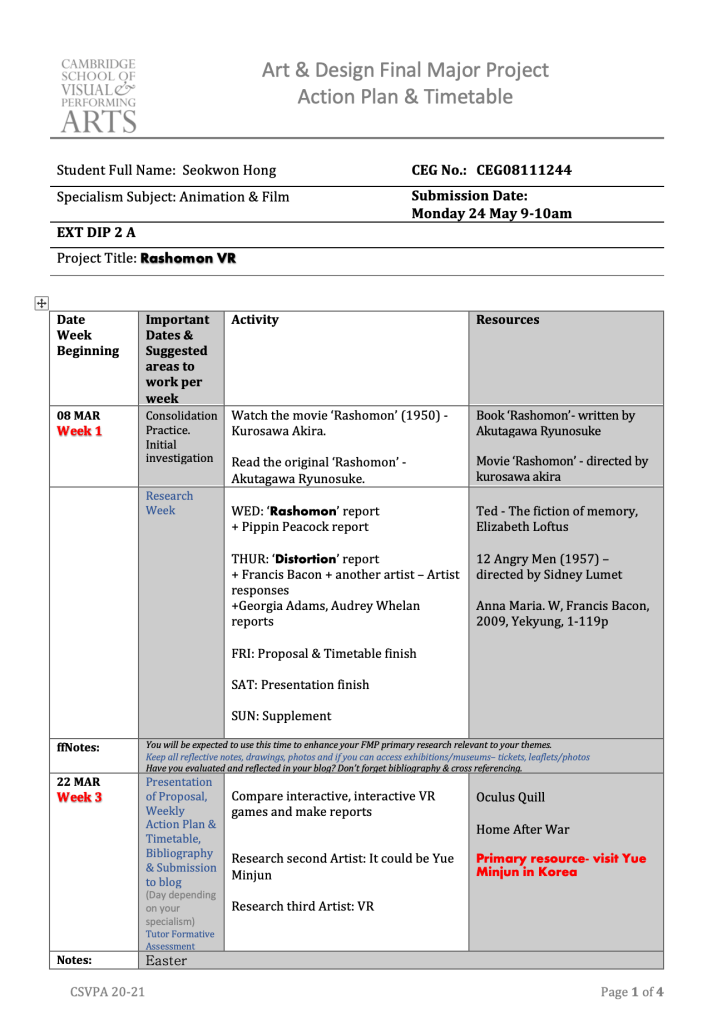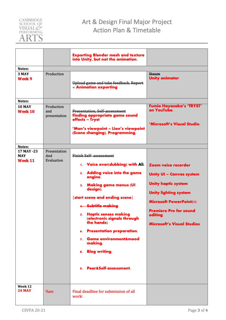 From this point onward, I would like to describe my weekly timetable, blogging process, and the preparation for my final presentation.