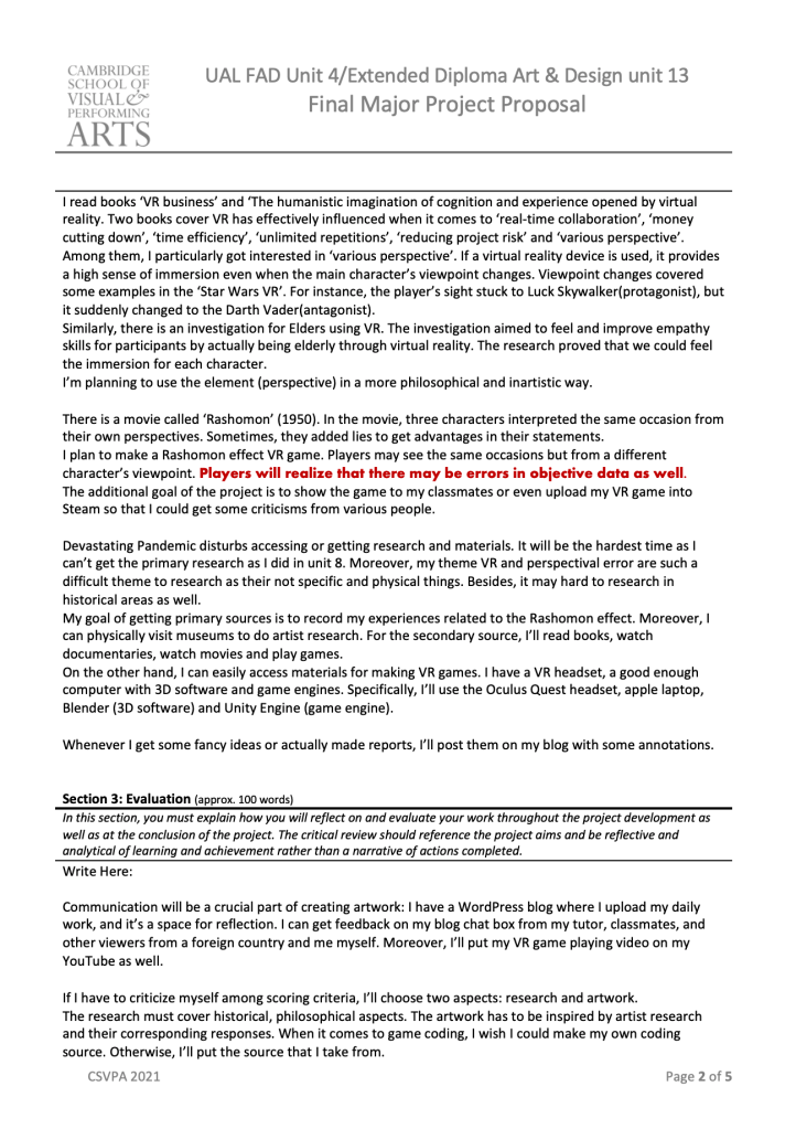 Through this experience, I also developed an interest in other computer languages, such as Blueprint, Java, and C++, particularly within Unreal Engine 4. What began in Unit 1 as an interest in fine art has gradually evolved into a genuine fascination with the engineering side of creative technology, such as game programming.