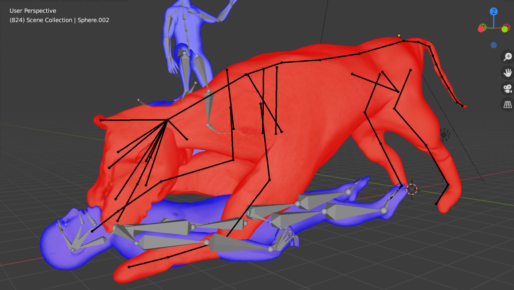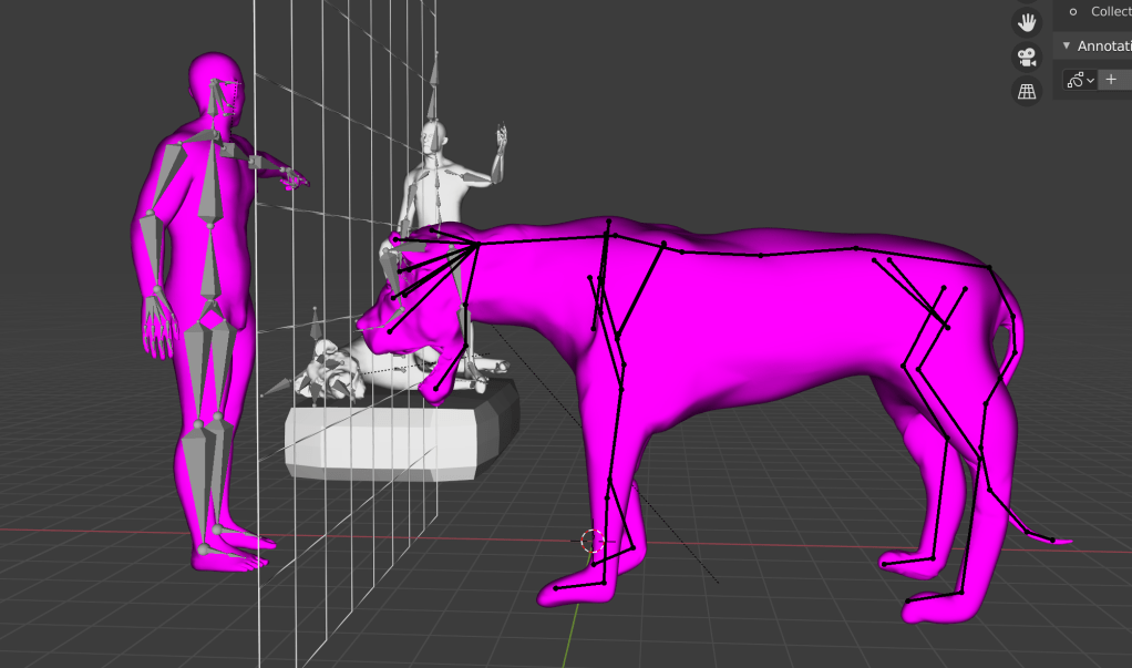 Thanks to this feature, I was able to edit and fine-tune the animations of the lion and the man independently, allowing them to perform actions separately and more precisely within the game environment.