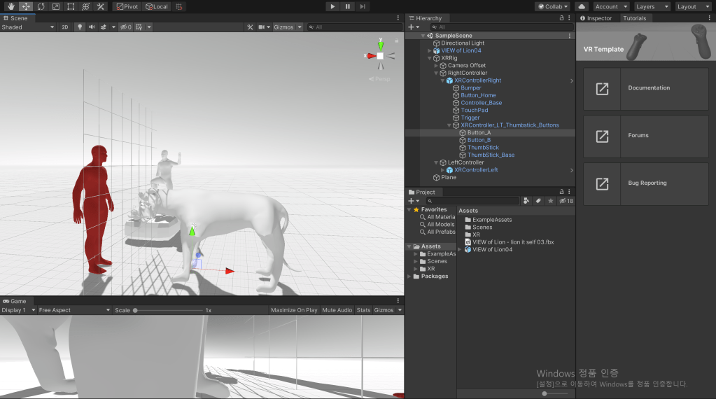 Regrettable point: The transition is currently one-way only—the player cannot return to the man’s perspective after switching to the lion’s. Although I attempted to implement a main menu using the same scripting method, an error occurred, preventing the first scene from loading properly.